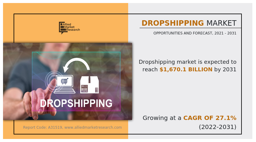 WILMINGTON, NEW CASTLE, DELAWARE, UNITED STATES, June 27, 2024 /EINPresswire.com/ -- The global ๐๐ซ๐จ๐ฉ๐ฌ๐ก๐ข๐ฉ๐ฉ๐ข๐ง๐ ๐๐๐ซ๐ค๐๐ญ was valued at $155.6 billion in 2021, and is projected to reach $1670.1 billion by 2031, growing at a CAGR of 27.1% from 2022 to 2031. The concept of dropshipping is typically attributed to the business model which mostly involves retailers working with other retailers, or working with players up the hierarchy. It is an order fulfillment method where a business doesnโt keep the products it sells in stock. Instead, the seller purchases inventory as needed from a third partyโusually a wholesaler or manufacturerโto fulfill orders. Nowadays, consumers prefer online shopping, as a considerable number of websites are available to choose products from.