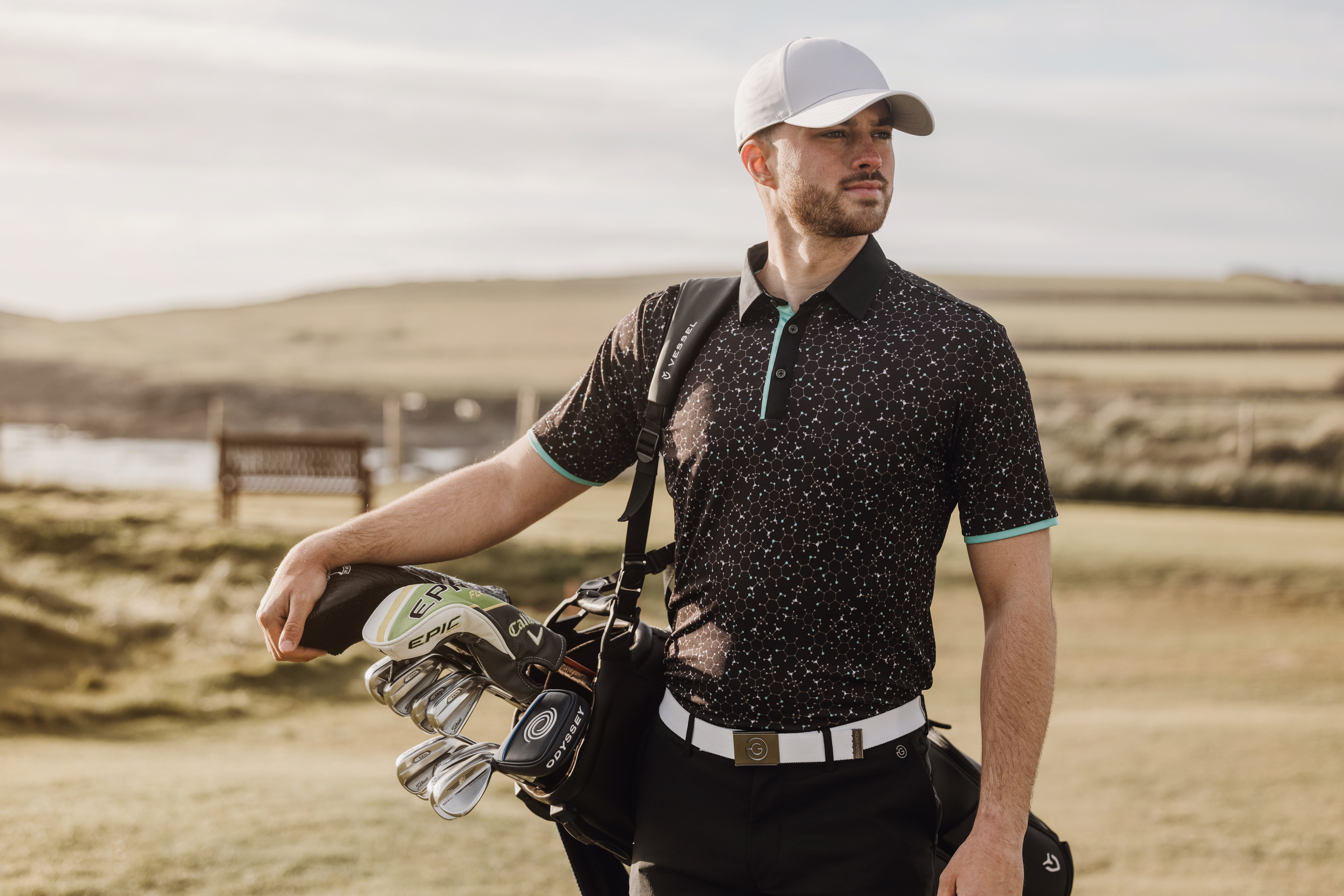 “Technical molecular structures form such an important part of our Part Two shirt range to offer a modern appearance that looks exceptional,” said Designer Batur Raza Muhammad. “We focused on combining striking patterns with highly appealing colors that perfectly compliment the scientific shapes to deliver a premium selection of shirts that keep golfers cool and dry, while also providing UV protection of 20+,” he added.