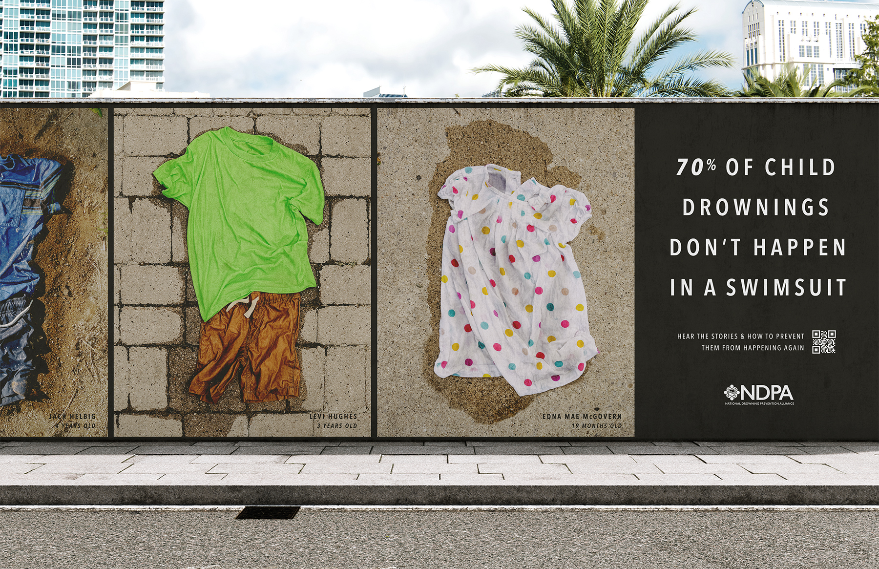 The Clothes They Wore launched July 1 via video, print, social, out of home, digital and experiential, and builds on NDPA’s 2023 Drowning Doesn’t Look Like Drowning campaign, which focused on how drowning events are fast and silent, dispelling the common misperception that a drowning victim can splash and call out for help.