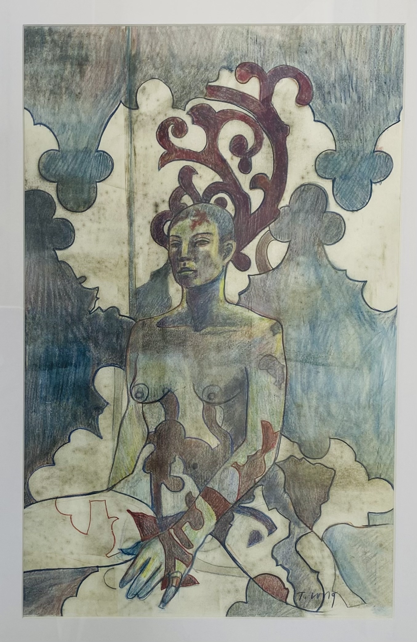 In "Indigenous Matter," Long also celebrates the beauty and grace of Blackness through her 'Black Goddess' series. These artworks feature nude figures adorned with rubbings of stylized design motifs inspired by patterns found in nature, architecture, and fashion. Each drawing embodies the strength, wisdom, and warrior spirit inherent in Black Indigenous Matter.