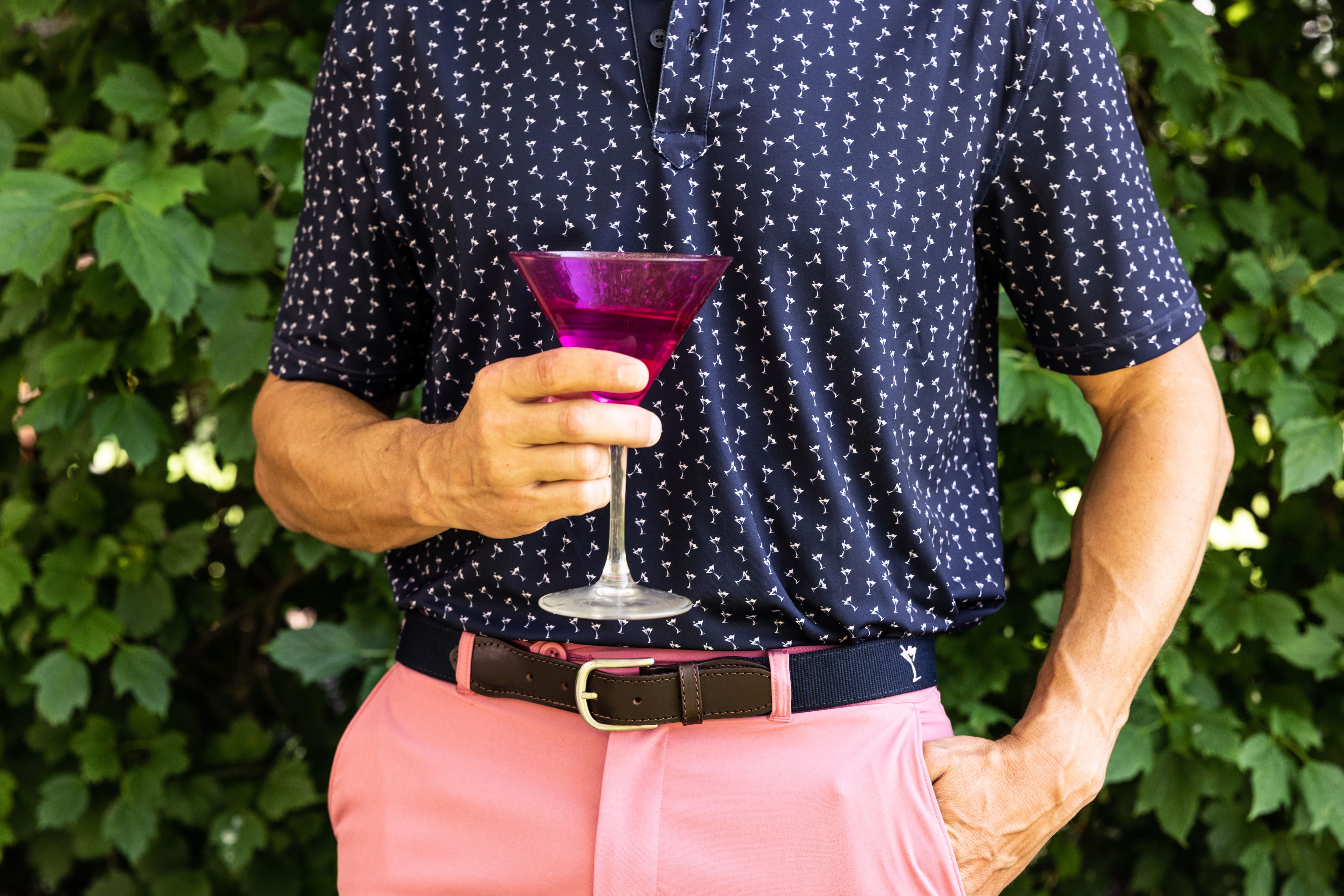 • Men's Martini Performance Polo: Featuring a fun and eye-catching martini print, this polo is crafted with performance fabric for comfort and coolness on the course.