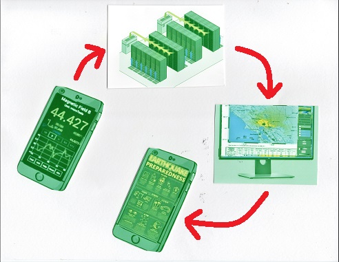 The Quake Me Up app expands upon this research in an attempt to maximize public safety in relation to earthquakes, volcanoes, and other natural disasters. The application can detect Very Low Frequency (VLF) electromagnetic emissions to detect the strength of magnetic force fields and combine that with the data from all other users. Thousands of simultaneous users can send this data to a centralized collection point to identify potential tectonic activity. If a major catastrophe is predicted and/or identified, the app can provide a “yellow” alert for phone holders and emergency response networks, i.e., fire, police, medical, etc. The app can be accessed to provide preparedness for both earthquake and volcano and action that should be taken. Ultimately, the app offers a way to maintain global information of the Earth’s electromagnetic environment on a consistent basis.