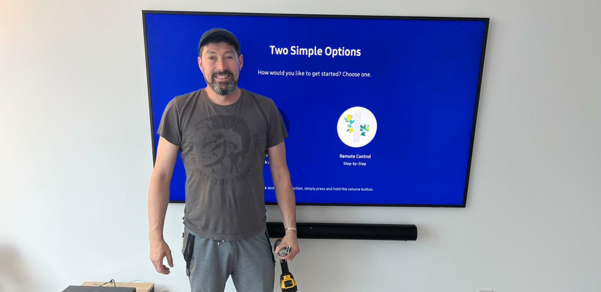 - Laura R. "These guys did a great job mounting our Samsung Frame TV and hiding the cables behind the wall. Super courteous, arrived on time (and on a Sunday at that) and went above and beyond doing a neat, quick job! As an added bonus, they were less expensive that other quotes I got. I really recommend Andrey and his crew! Thanks so much!"