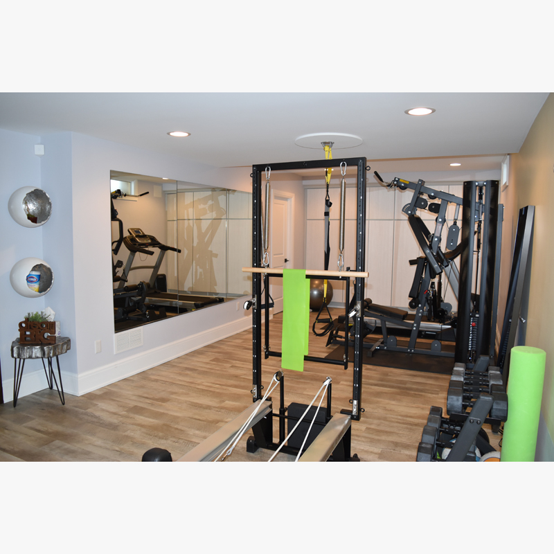 With her emphasis on functional training and total conditioning, one of her main specialties is STOTT Pilates. She also offers generalized personal training in her basement studio, which contains several pieces of equipment. This includes various equipment for strength training including a chair, a V2Max Reformer, and free weights. She also has a treadmill for warmups.