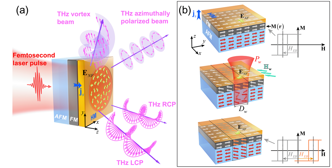 This new research (https://doi.org/10.1186/s43593-024-00069-3), led by Prof. Zhensheng Tao, Prof. Yizheng Wu from Fudan University and Prof. Yan Zhang from Capital Normal University, overcomes these limitations by employing programmable spintronic emitters based on exchange-biased magnetic multilayers. These devices consist of thin layers of magnetic and non-magnetic materials that convert laser-induced spin-polarized currents into broadband terahertz radiation.