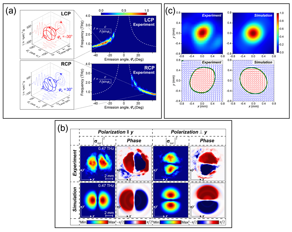 "The key innovation lies in our ability to flexibly program the magnetization pattern within the emitter with high precision and high spatial resolution," graduate student and first author Shunjia Wang explains. "This allows us to design and generate terahertz beams with complex polarization states, including beams with spatially separated circular polarizations, azimuthal or radial polarization states, and even a full Poincaré beam."