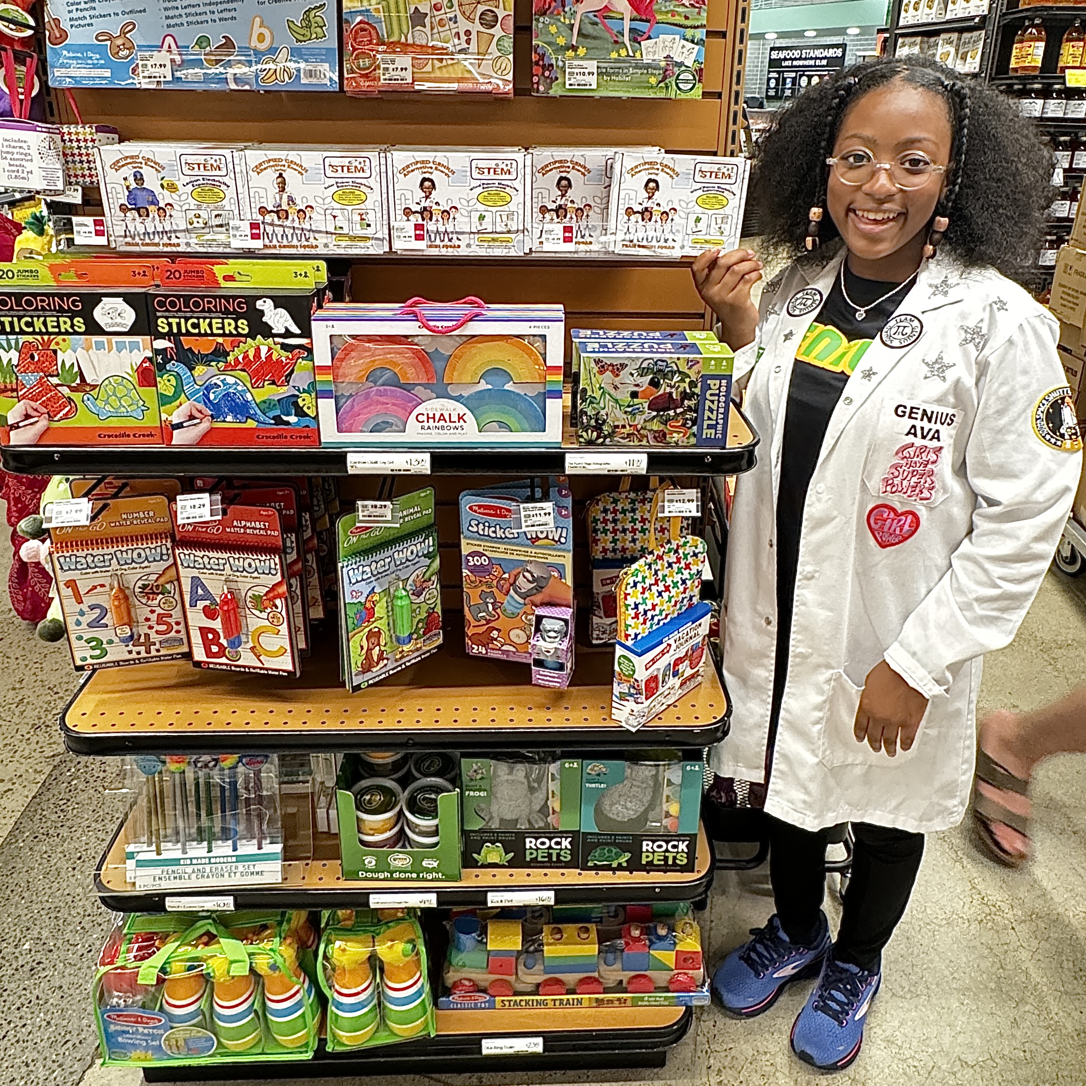 To find a Whole Foods Market store in your area, visit https://www.wholefoodsmarket.com/stores. For every S.T.E.M. Toy sold, Simmons donates a S.T.E.M. Toy to the community via her nonprofit organization, Team Genius Squad, Inc.