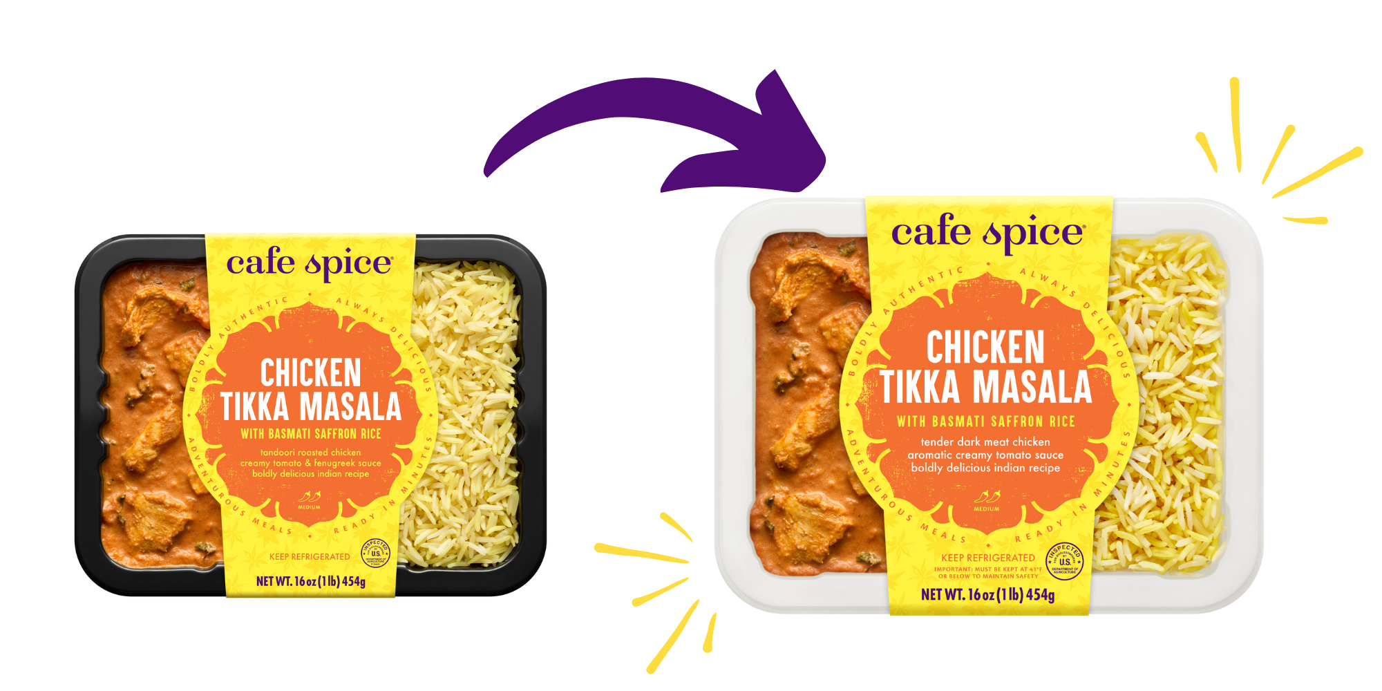 USA, July 9, 2024 /EINPresswire.com/ -- Cafe Spice, the growing food manufacturer providing ready-to-eat Indian meals, in food service and branded retail, with additional set-up for the private label and co-manufacturing category, continues to enhance its operation, this time, by improving its sustainability efforts through transitioning its retail packaging to translucent, #5 polypropylene plastic trays. This modification has already begun to roll out and will continue gradually over the next several weeks.As the benefit of environmentally friendly resources surges, Cafe Spice acknowledges the implication of supporting the effort to limit the material that ends up in landfills. The preceding packaging used for Cafe Spice’s retail combo meals, which is a black tray, is recyclable, however, it’s been argued that sorting machines used at recycling plants aren’t able to easily pick up the black pigment, resulting in unsorted plastic that goes to waste.