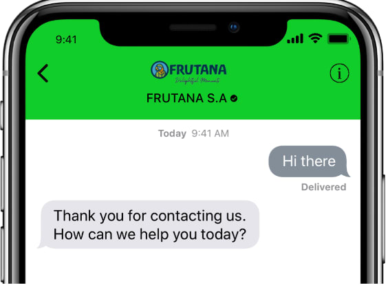 By integrating Apple Business Messages, FRUTANA provides a seamless, user-friendly communication channel for its customers. This platform allows users to interact with the company directly through the Messages app on their Apple devices, offering a convenient and efficient way to address inquiries and concerns.