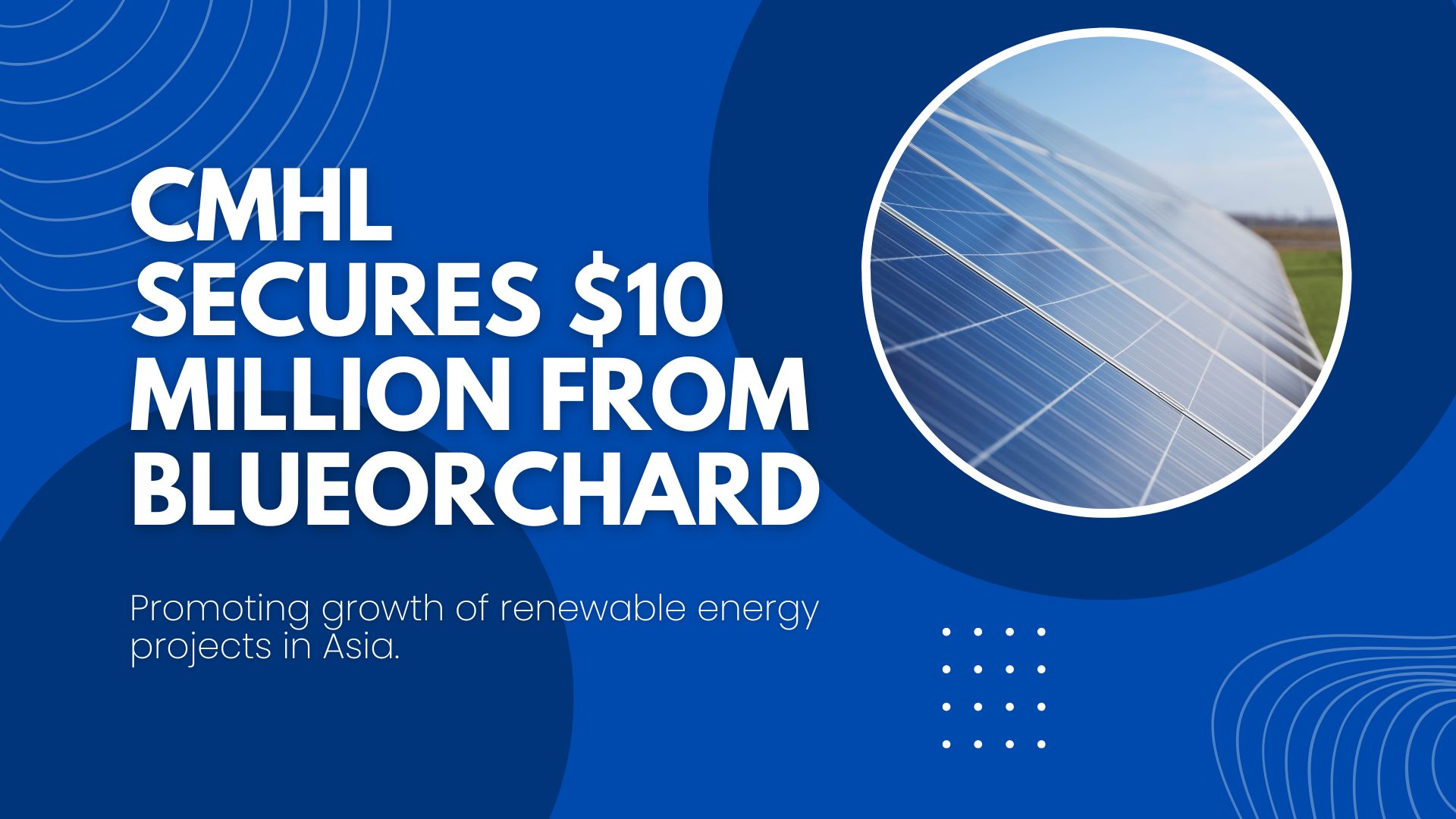 “CMHL is committed to provide affordable clean energy electricity supply and provides solutions to industries to reduce their scope 1, 2 and 3 emissions, creates green jobs, and targets to grow in emerging markets in SE Asia. We are confident that with its strong management team, consisting of industry experts with extensive experience in implementing solar power projects, the company will achieve its growth objectives and we look forward to supporting them on their path”, said Prabaljit Sarkar, Investment Director Infrastructure, at BlueOrchard.