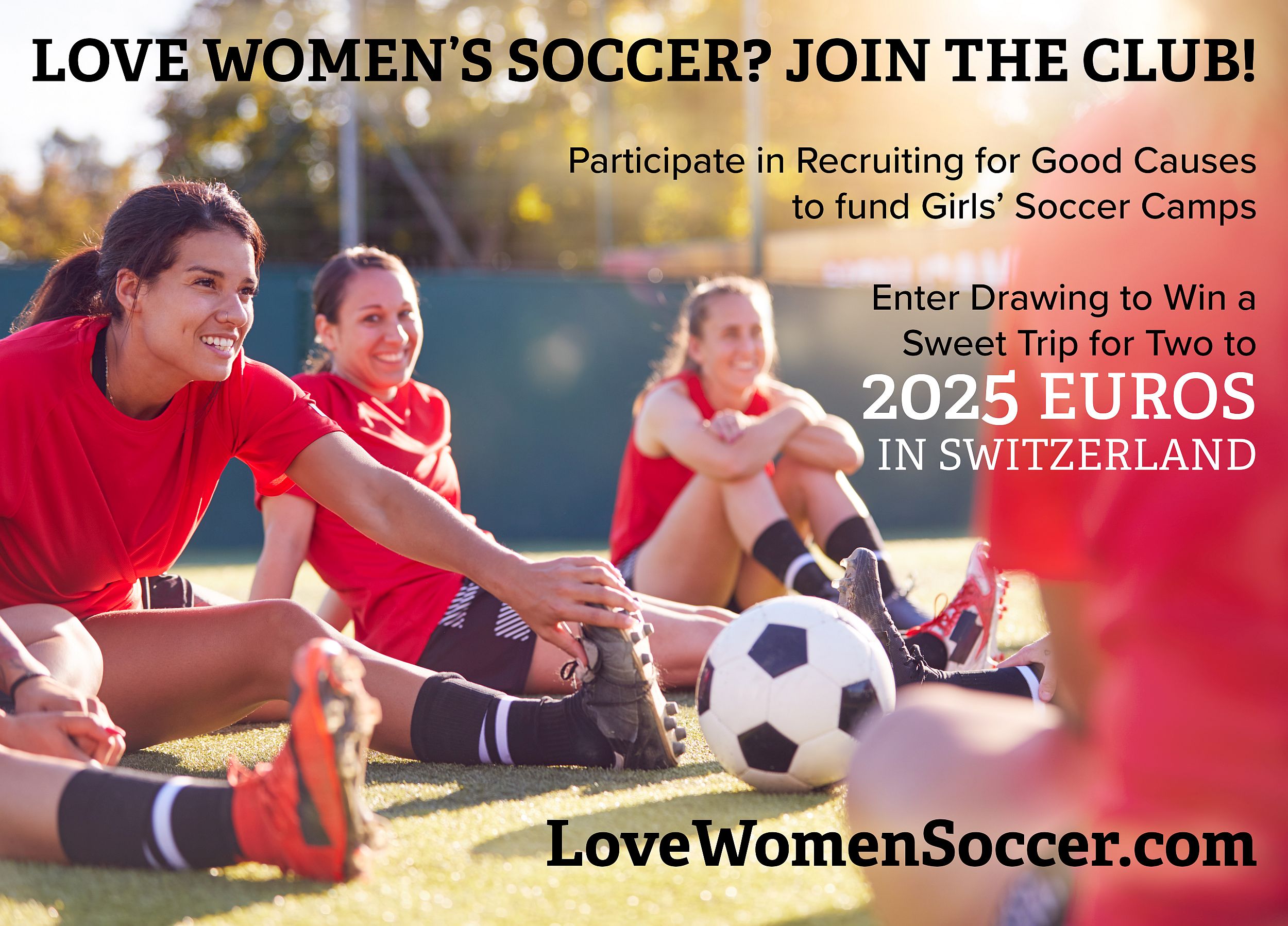 Participate in Recruiting for Good Causes to help sponsor a girl soccer camp experience; and enter sweet drawing for trip for two to 2025 Women Euros in Switzerland www.LoveWomenSoccer.com Join The Club!