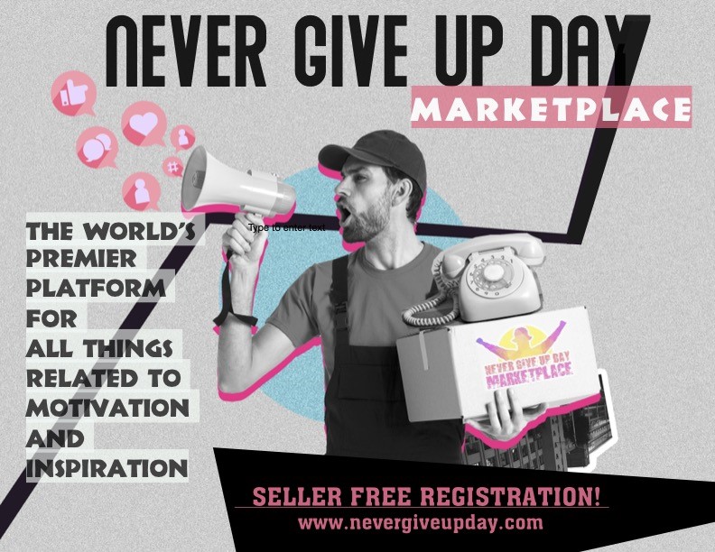 Don’t miss out on this unique chance to boost your business and connect with a global audience eager for inspiration. Register now on the Never Give Up Day Marketplace and start selling your products and services today.