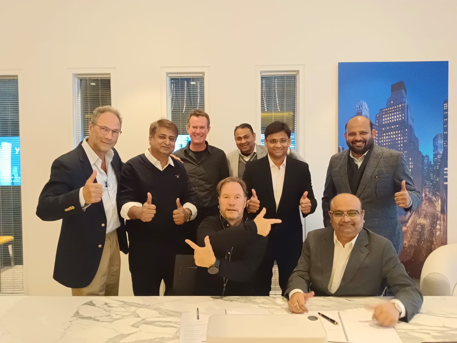 Jagadish Naik (Chairman DN Group), Siddharth Nayak (VP-DN Group), John Hitchcock (Chairman-YOO), James Snelgar (Partner-YOO), Aseem Agarwal, Vikas Sarraf, Ani Dasgupta (Cofounders- SQUAREA)