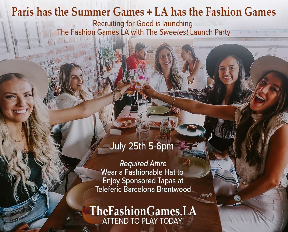This Thursday, July 25th at 5pm to 6pm Recruiting for Good and The Rosé Social Club Paris to LA are hosting the sweetest launch party for The Fashion Games LA at Teleféric Barcelona in Brentwood. Attendees are required to wear most fashionable hats; and will enjoy LA's Best Tapas.