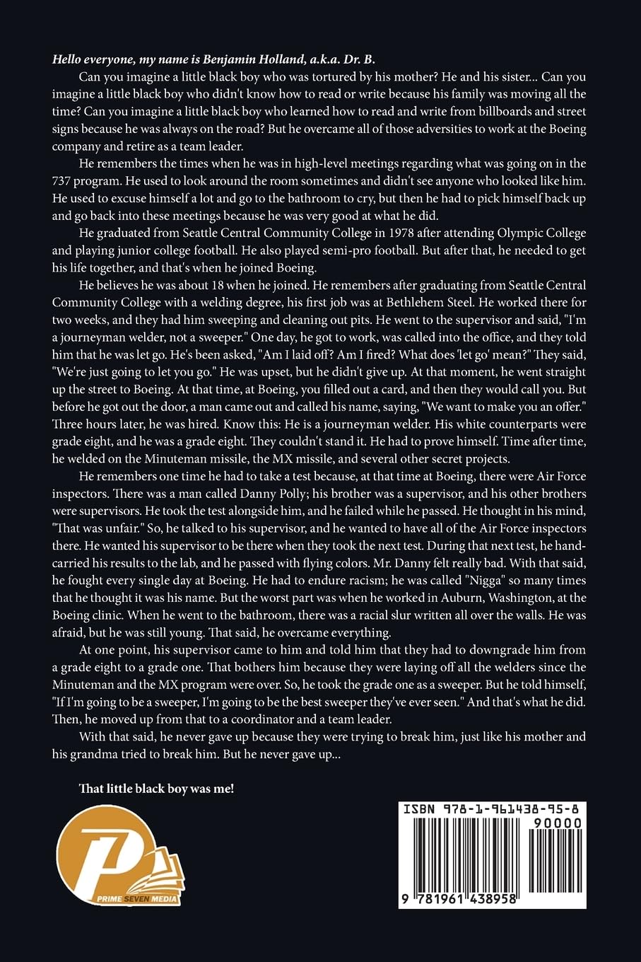 Dr. Benjamin Holland, also known as Dr. B, recounts his challenging journey from a difficult childhood to a successful career at Boeing. Benjamin grew up under severe hardships, including abuse from his mother and a transient lifestyle that hindered his ability to read and write. He learned literacy through billboards and street signs.
