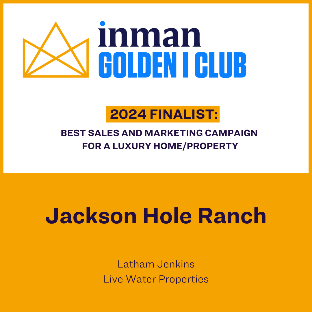 In addition to his speaking engagement, Jenkins is honored as a finalist in the category Best Sales & Marketing Campaign for Home/Property for his successful sale of the Jackson Hole Ranch. The Inman Golden I Club award represents the highest level of achievement in the luxury real estate industry, recognizing professionals who not only achieve record-breaking sales but also push the boundaries of what’s possible in the industry.