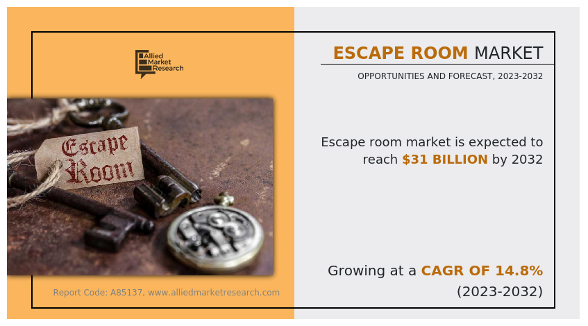 WILMINGTON, DELAWARE, UNITED STATES, July 28, 2024 /EINPresswire.com/ -- According to the report, the global escape room market generated $7.9 billion in 2022, and is anticipated to generate $31.00 billion by 2032, witnessing a CAGR of 14.8% from 2023 to 2032.