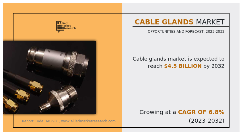 According to a new report published by Allied Market Research, the cable glands market size was valued at $2.4 billion in 2022, and is estimated to reach $4.5 billion by 2032, growing at a CAGR of 6.8% from 2023 to 2032.