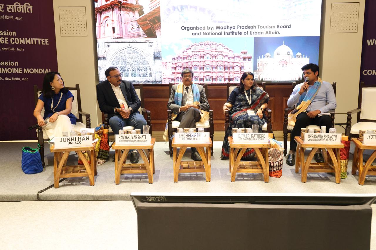 Highlighting the remarkable heritage of Gwalior and Orchha, the session brought to light Madhya Pradesh’s efforts to integrate heritage conservation with urban development. Principal Secretary of Tourism & Culture and Managing Director of Madhya Pradesh Tourism Board, Mr. Sheo Shekhar Shukla, along with Mr. Neeraj Mandloi, Principal Secretary UADD, Madhya Pradesh, Ms. Gayatri Rathore, Principal Secretary Tourism, Rajasthan, and Mr. Ramya Kumar Bhatt, Deputy Commissioner of Ahmedabad Municipal Corporation, shared insights on effective management of historic cities and settlements. The session was moderated by Ms. Junhi Han, Chief of Culture India UNESCO.