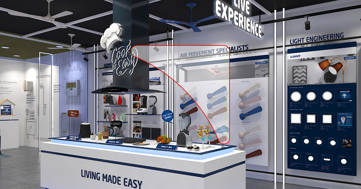 3. Installation of sliding fixtures and live experience zones incorporated higher number of SKUs across Crompton’s massive catalog