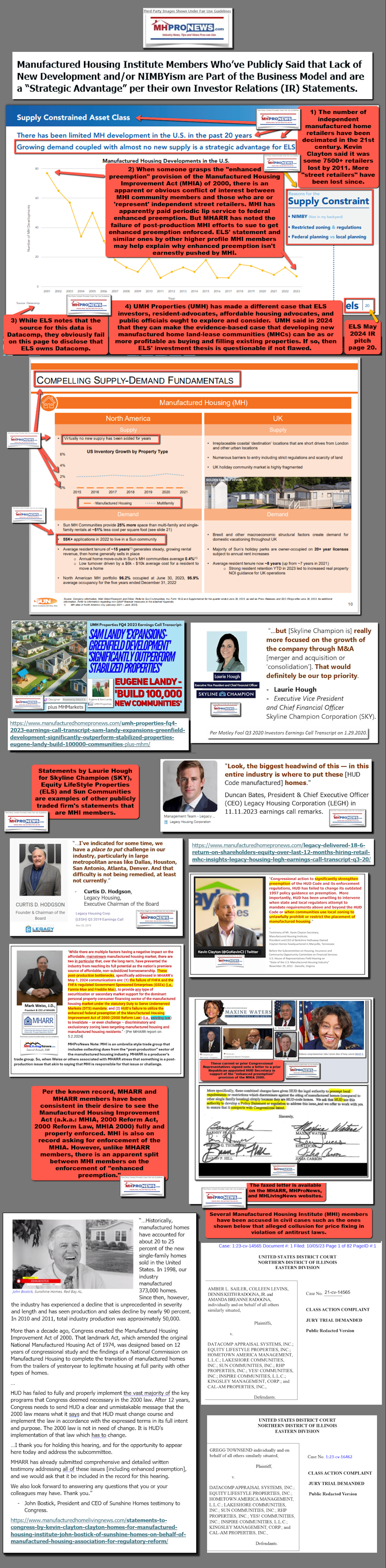 Equity LifeStyle Properties (ELS) Sun Communities SUI Manufactured Housing Institute Members MHProNews Legacy Housing Duncan Bates Curt Hodgson UMH Properties John Bostick Sunshine Homes SamLandyEugeneLandyAntitrustSuitsInvolveMHImembersEnhancedPreemptionMHIA-MHProNews