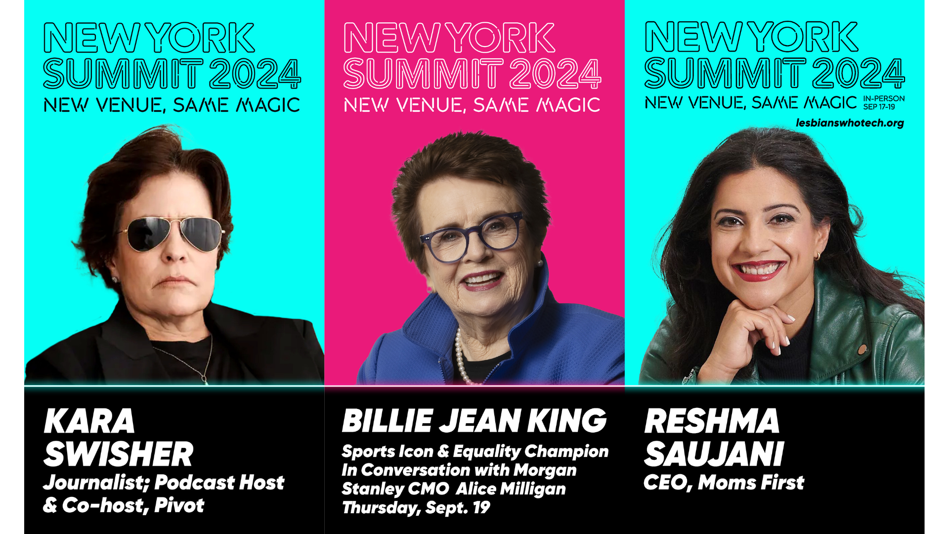 Kara Swisher, Billie Jean King, and Reshma Saujani and other top leaders speaking at the 2024 New York Summit September 17th-19th.