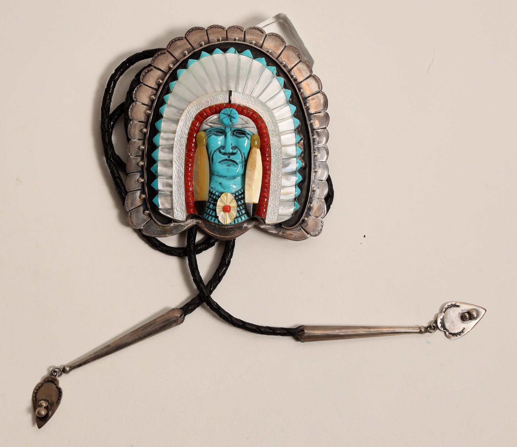 Pieces include a jaw-dropping Zuni bolo by Danny Young, signed on the reverse, with custom silver work by Savage. The bolo, crafted circa 1975, weighs 203 grams and is one of the finest Zuni bolo artisan pieces of its time (est. $7,000-$15,000). Also up for bid is a Navajo squash blossom necklace, Bisbee baby blue turquoise by Nerns with matching ring (est. $2,000-$3,500).
