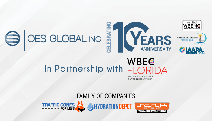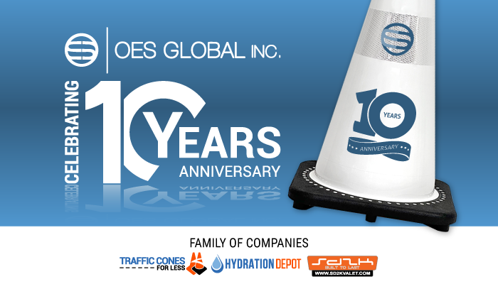 Celebrating OES Global Inc.'s 10-year Anniversary and its portfolio to include leading brands such as Hydration Depot, Traffic Cones For Less, SD2K Valet, and Absorbents For Less.