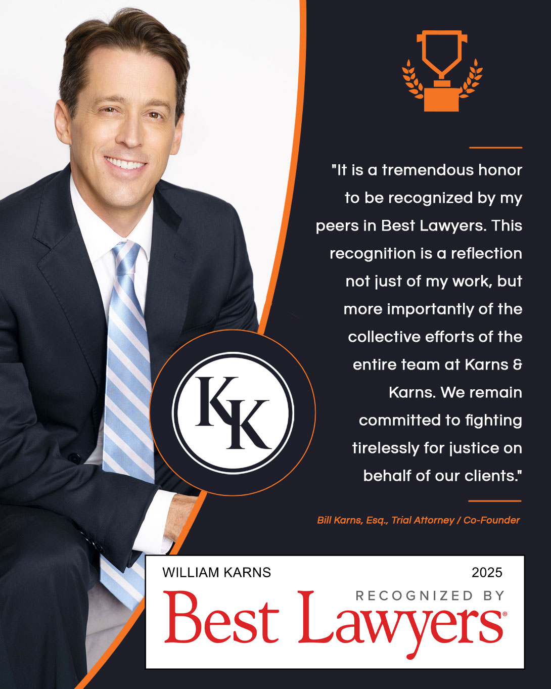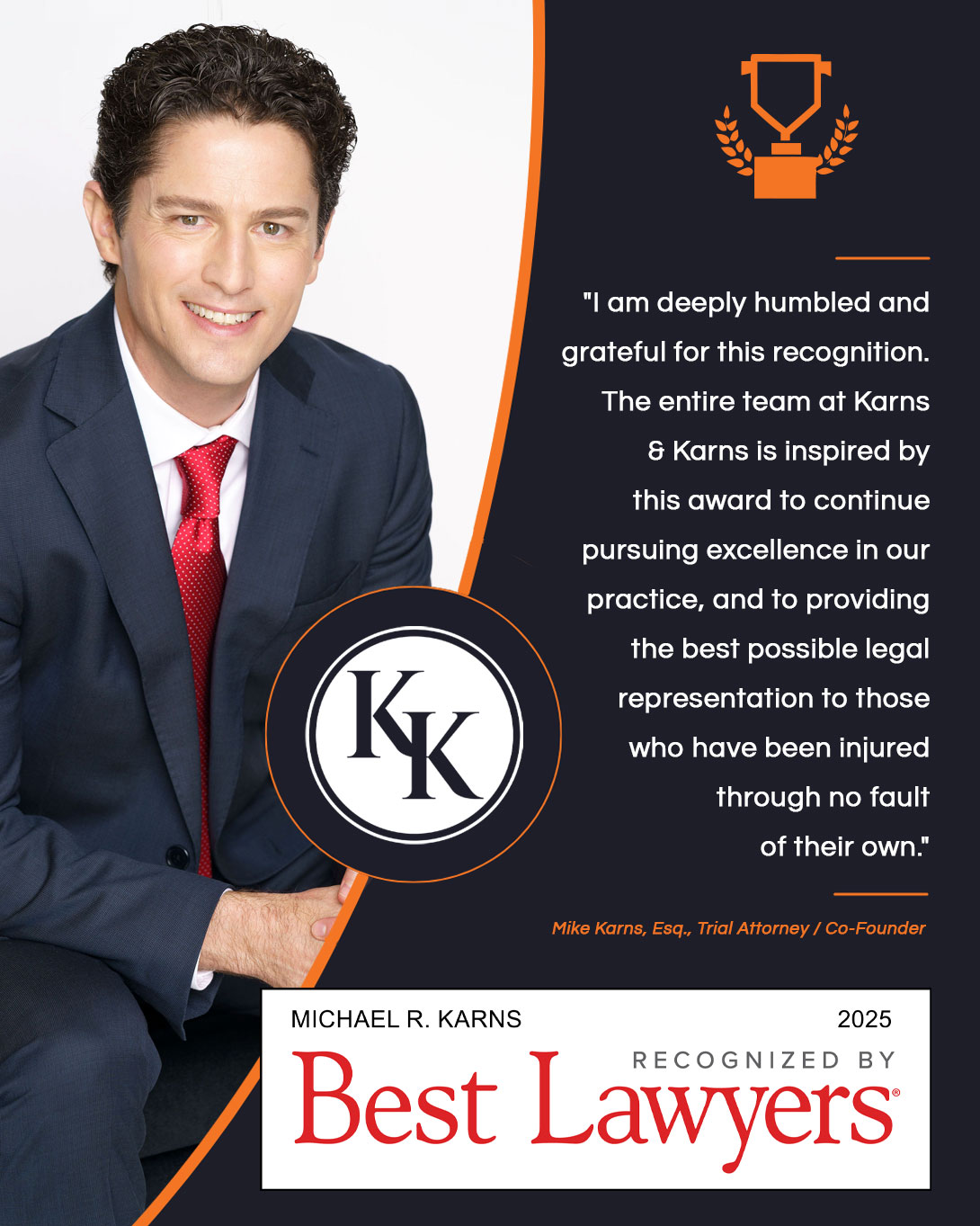 Michael Karns echoed this sentiment, stating, "I am deeply humbled and grateful for this recognition. The entire team at Karns & Karns is inspired by this award to continue pursuing excellence in our practice, and to providing the best possible legal representation to those who have been injured through no fault of their own."