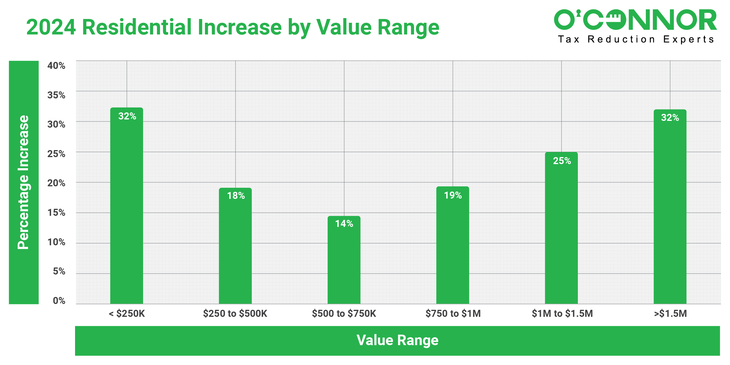 CHICAGO, ILLINOIS, UNITED STATES, August 16, 2024 /EINPresswire.com/ -- Residential Assessment SurgesProperty owners in Cook County are all too familiar with the ascent of their home values. In 2024, residential property in West Chicago Township has collectively jumped from just over $38 billion to $45.9 billion, an increase of 21%. The climb in assessments is the most pronounced for homes in the highest and lowest value ranges. Property under $250K saw an average increase of 32%. Homes over the $1.5 million price point saw an equal escalation of 32%. It is a poor consolation to residential owners of homes in the $500K to $750K range to know that their values averaged the least gain in assessment with only a 14% rise in assessed value.