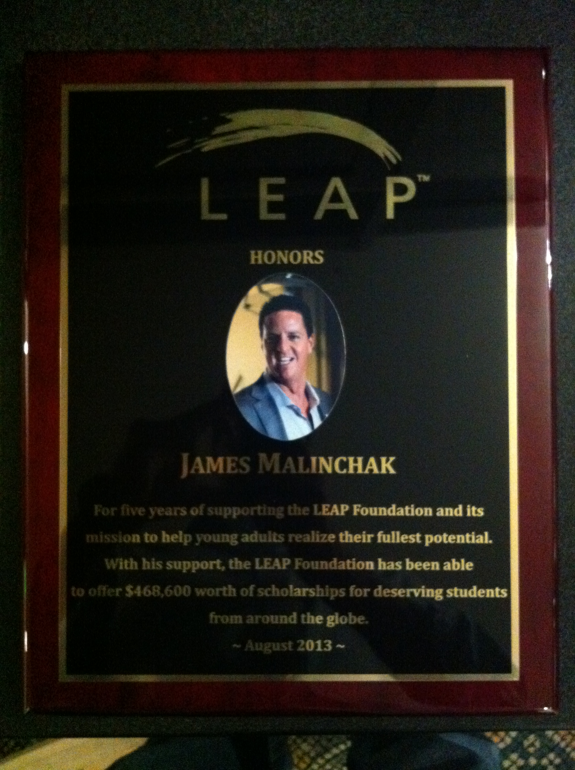 Malinchak raised $58,528 to support LEAP, a teen leadership program in Los Angeles. He also donated his time to speak to youths in the program and to advise them.