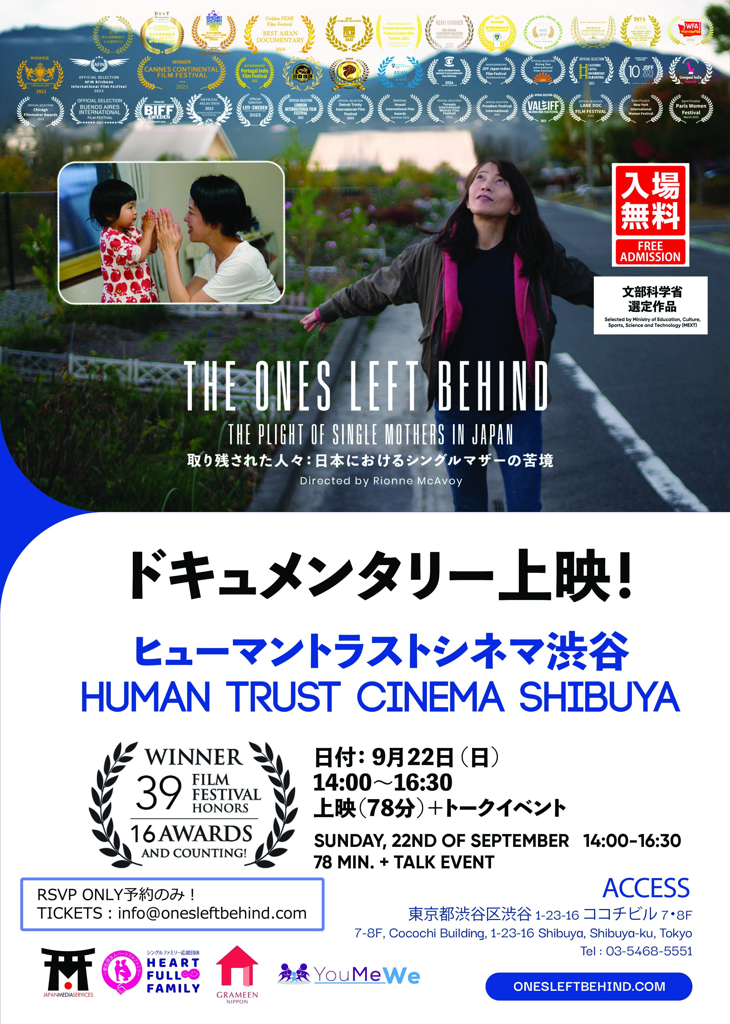 Award-Winning Documentary 'The Ones Left Behind: The Plight of Single Mothers in Japan' to Screen at Human Trust Shibuya