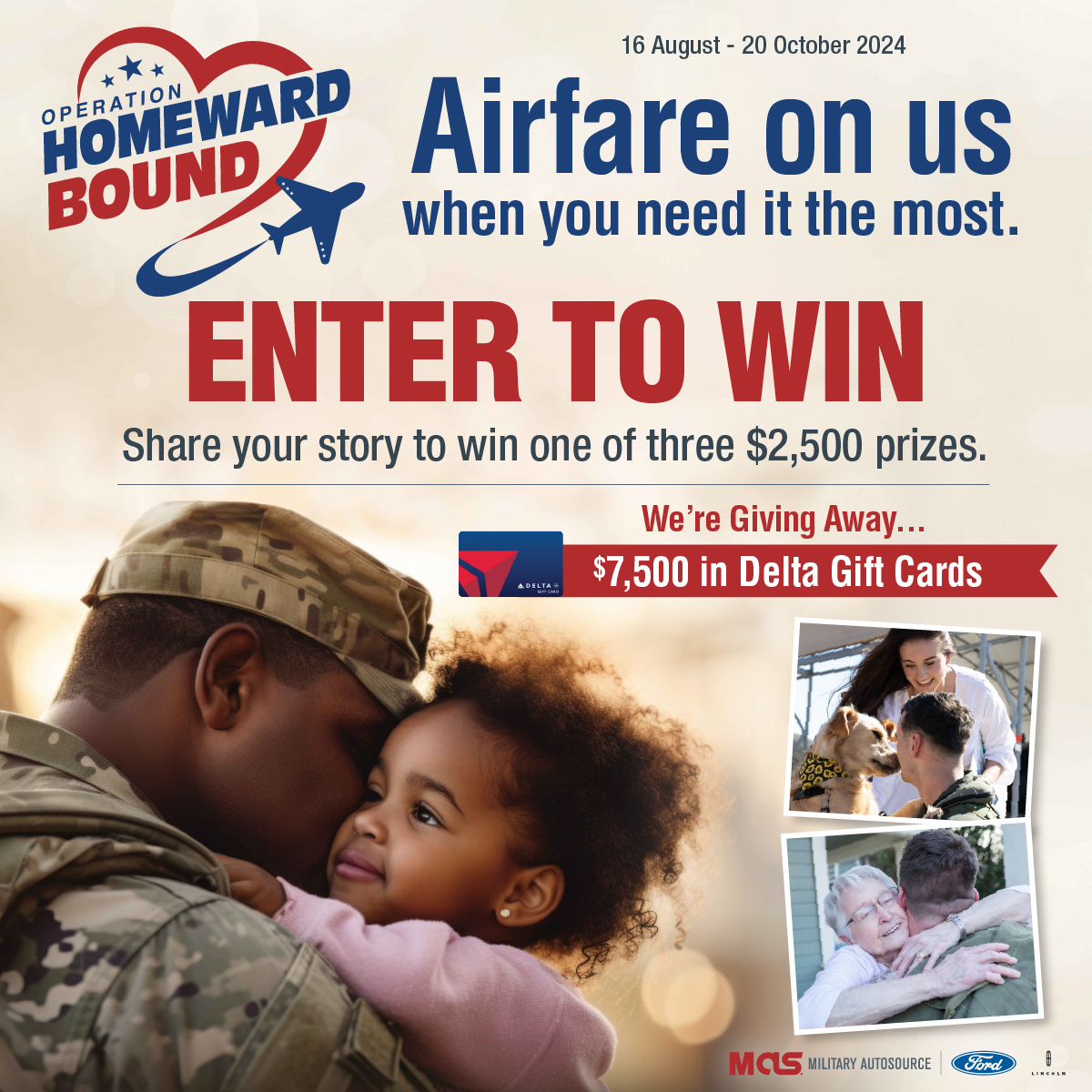 WOODBURY, NY, UNITED STATES, August 22, 2024 /EINPresswire.com/ -- For the seventh consecutive year, Military AutoSource (MAS), the exclusive DoD-authorized car-buying program for U.S. Military overseas, has partnered with the Ford Motor Company to launch Operation Homeward Bound.This initiative underscores the commitment of MAS to support service members stationed or deployed overseas, offering them a chance to reconnect with loved ones back home.