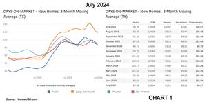 Chart 1: Texas New Homes Tracking – Days on Market – July 2024