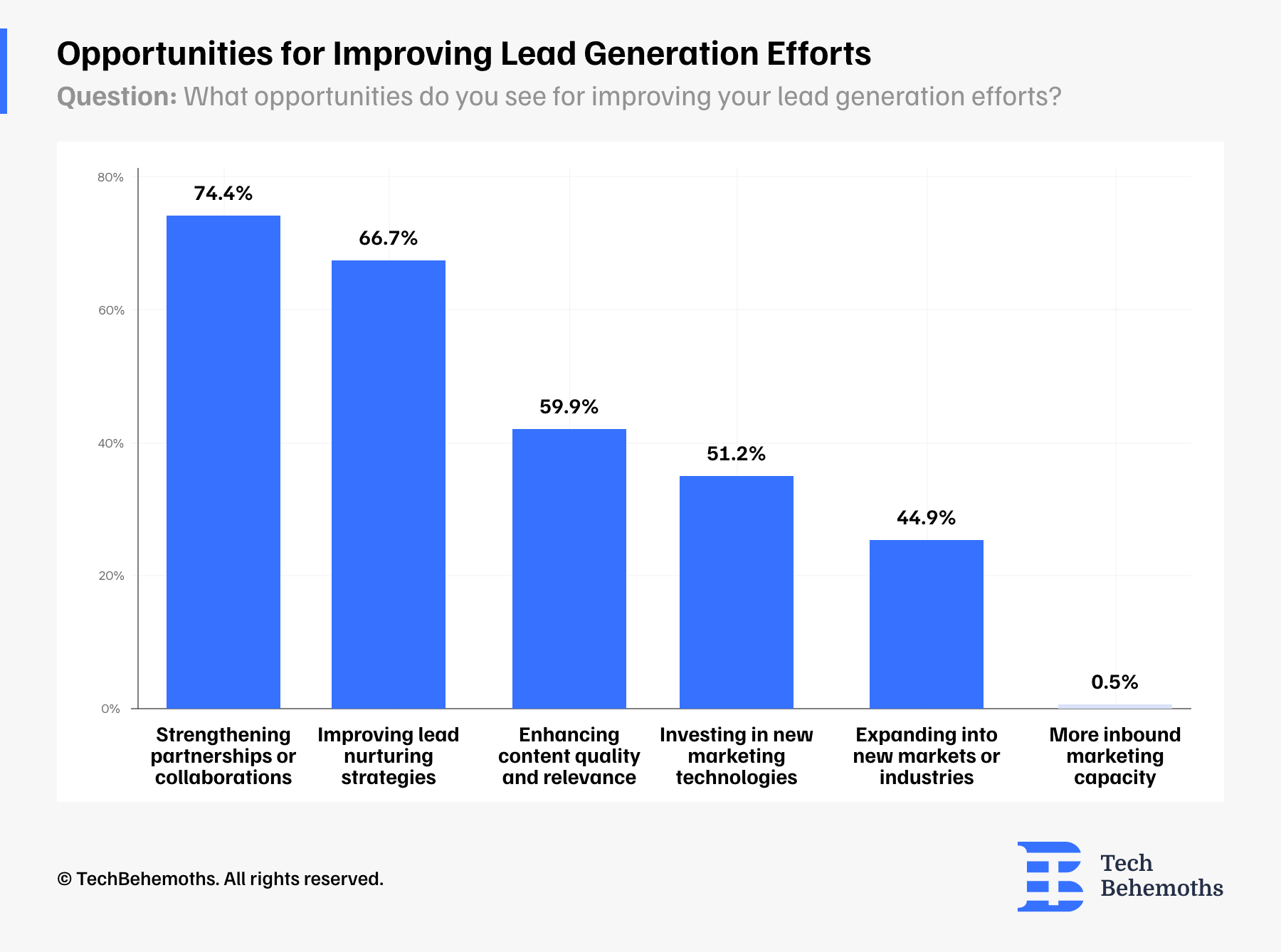 74.4% of tech companies build stronger partnerships/collaborations to improve lead generation strategies.