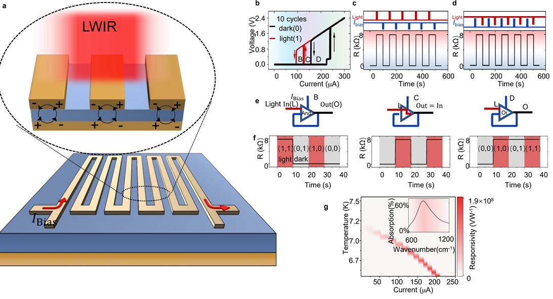 In a new paper (doi: https://doi.org/10.1038/s41377-024-01424-2 ) published in Light Science & Applications, a team of scientists, led by Professor Zhenghua An from Fudan University, Yanru Song from ShanghaiTech University and co-workers have developed a superconducting memlogic sensor that integrates the capabilities of infrared sensitivity, memory retention, and reconfigurable logic computing, all-in-one infrared memlogic sensory. They demonstrate the simultaneous four controls of this superconducting device including optical/electrical biases, and optical/electrical pulses allow different encoding logic with increasing functional complexity. With these reconfigurable operations, they show the infrared remote encrypted communication at a single device level. Given the prevalence of bistable effects, extensive wavelength coverage, and high photo-sensitivity in superconductors, their memlogic sensing concept, utilizing superconducting phase transitions, shows potential for versatile applications across a wide electromagnetic spectrum and down to quantum-levels in various fields such as machine perception, remote sensing, secure communication, and space detection. These scientists summarize the operational principle of their sensor:
