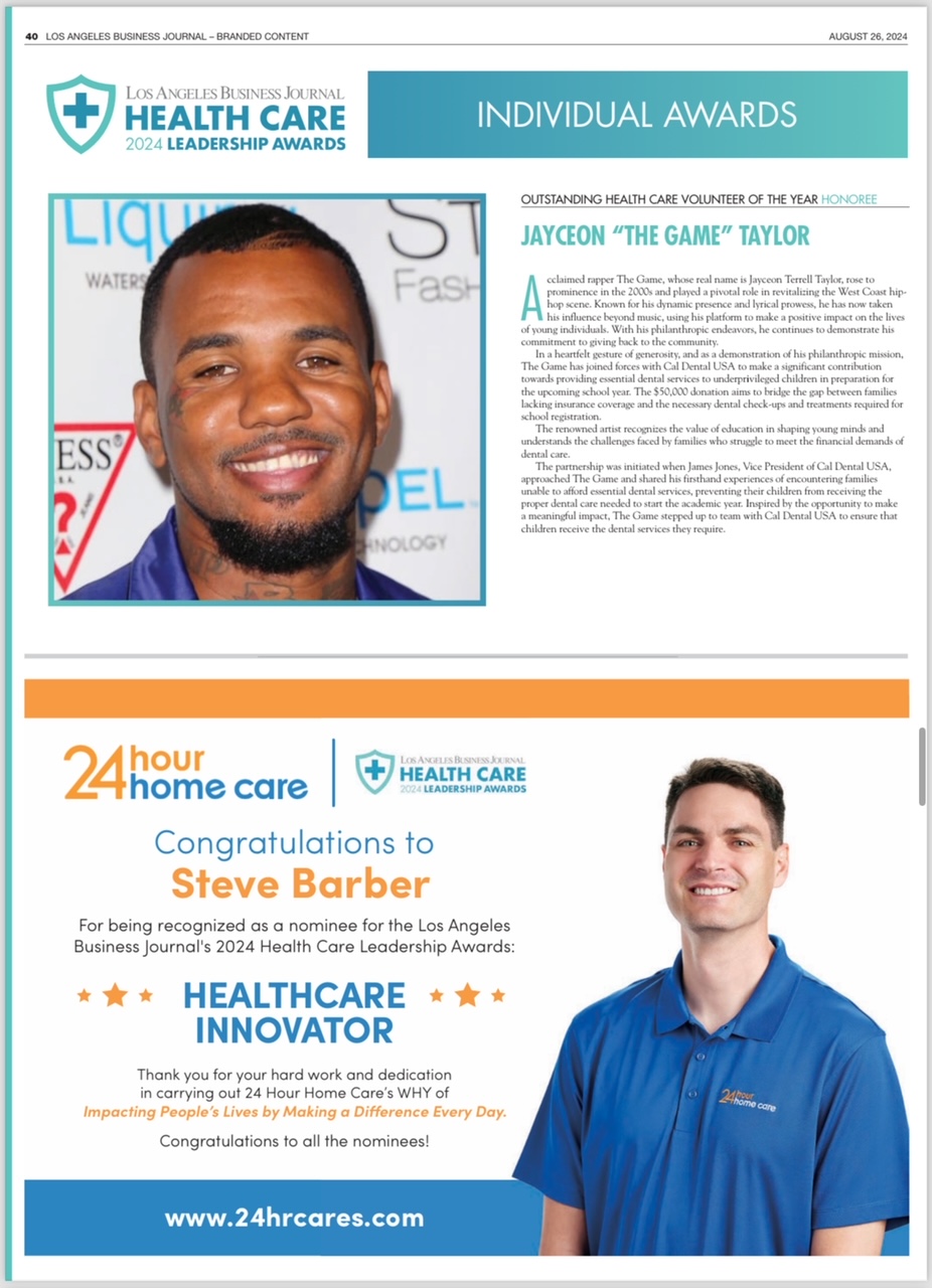 The Game Recognized for Healthcare Leadership, Nominated by Los Angeles Business Journal for His Impactful Community Initiatives with Cal Dental USA.