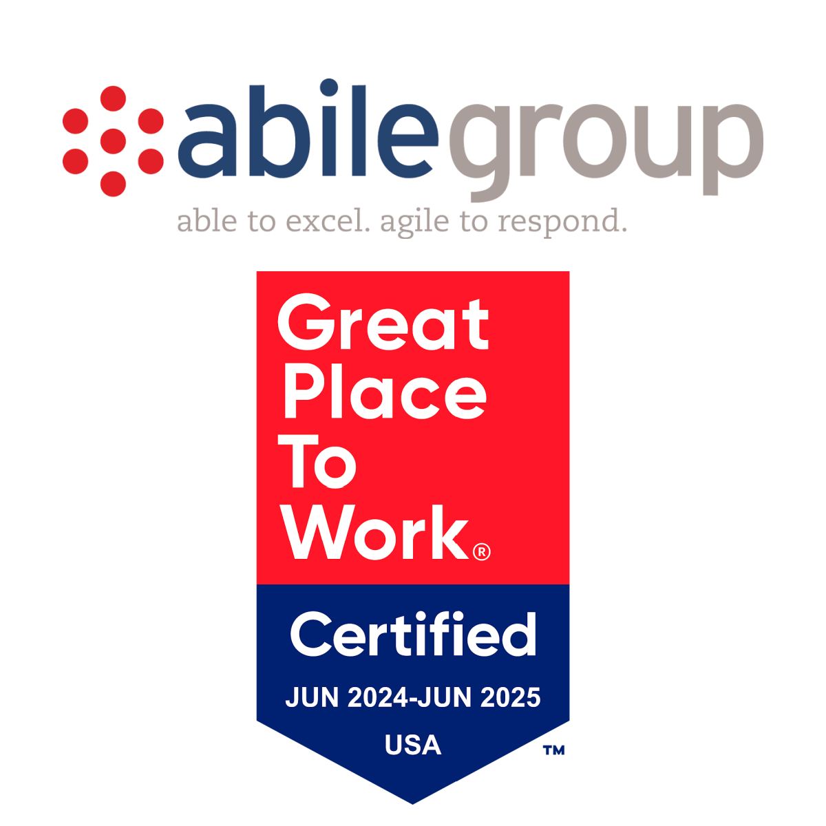 Abile Group has been Great Place To Work® certified for five straight years, and 100% of their employees reported it as a Great Place to Work for the past two years. The company has also spent four years on the Inc. 5000 list, 3 years on the BBJ Fast 50, has earned the HIREVets Medallion annually since 2020, and is V3 certified by the State of Virginia.