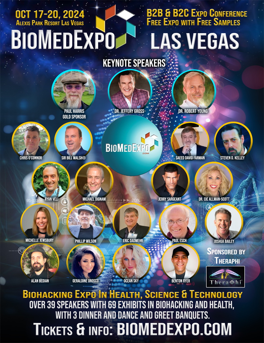 Biomed Expo ushers in new earth frequencies of biohacking and Trans-Humanism at the Alexis Park Resort, OCT 17-20, 2024, the Expo/ conference brings together a highly coveted group of physicians to defy the preconceived limits of the human body. With over 30 speakers and 100 lectures, workshops with 69 Exhibits, this healing fest has curated the leading minds behind the latest leaps in healing modalities in functional Wellness, Plasma Technology and Quantum Healing.
