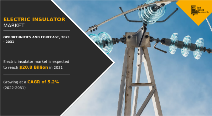 According to a new report published by Allied Market Research, The electric insulator market size was valued at $12.6 billion in 2021, and electric insulator industry is estimated to reach $20.8 billion by 2031, growing at a CAGR of 5.2% from 2022 to 2031.