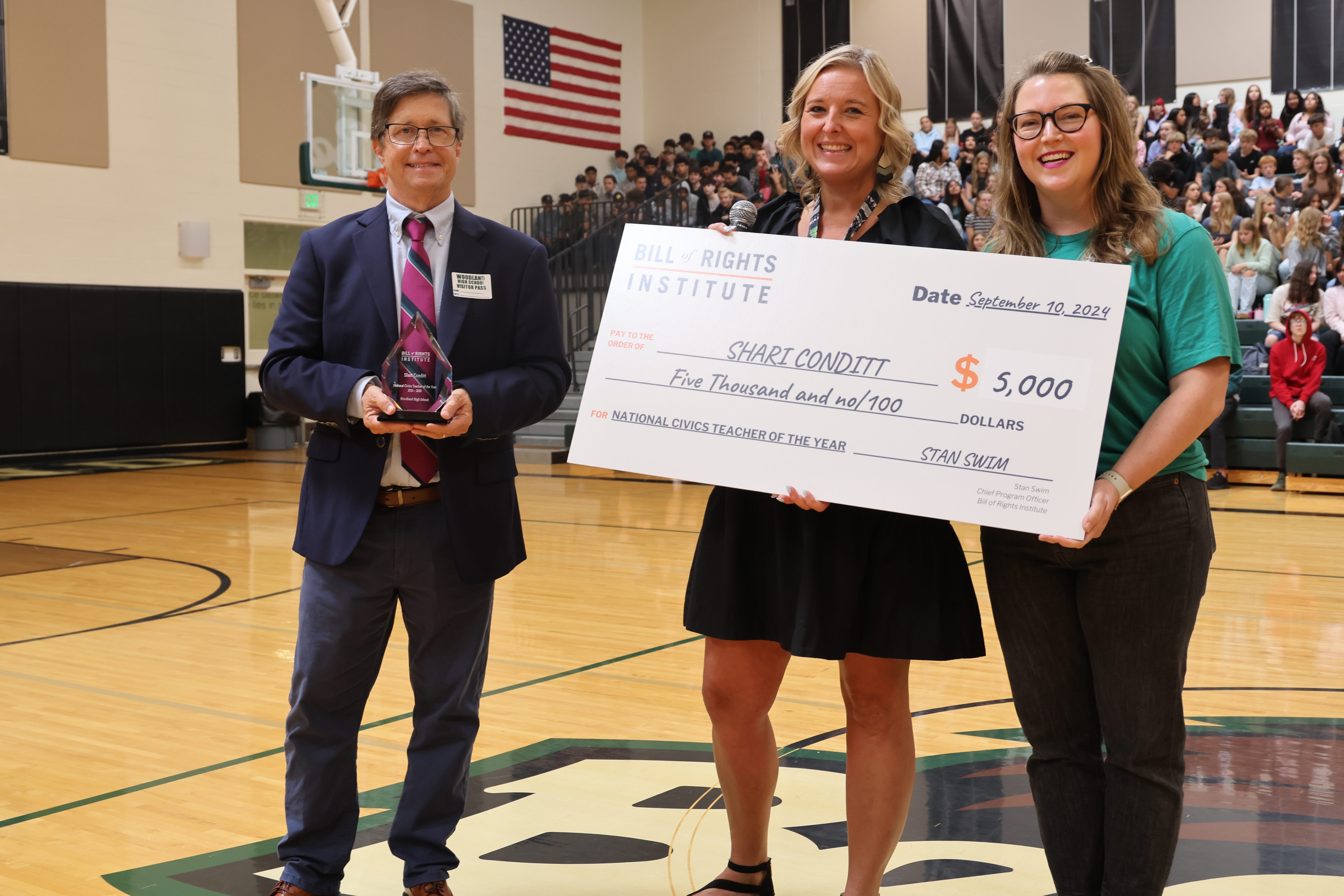 The award, which was presented to Conditt by representatives from the Bill of Rights Institute and SmartPass at a surprise school assembly on September 10, comes with a $5,000 top prize.