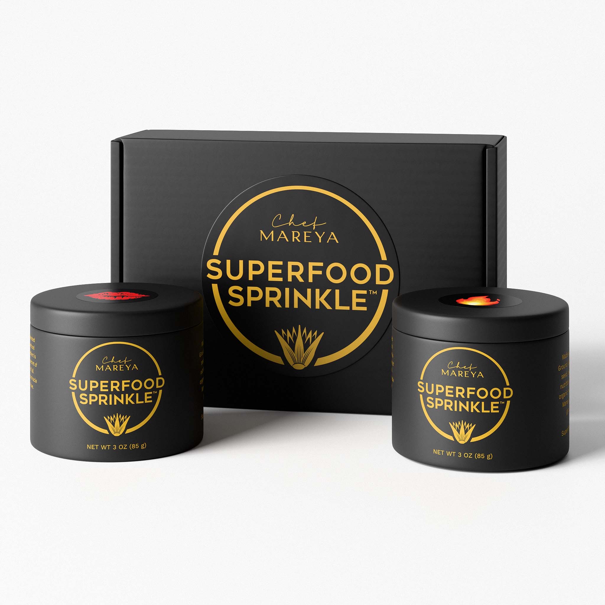 Two flavor-packed options, Chef’s Kiss and Hot Stuff (spicy) and Superfood Sprinkle(™) offer any dish a tasty, versatile, and health-boosting flavor.