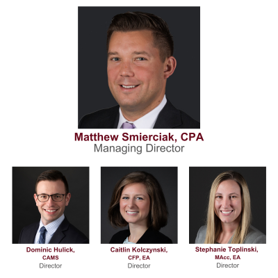 PRINCETON, NJ, UNITED STATES, September 13, 2024 /EINPresswire.com/ -- Mercadien is pleased to announce several promotions within the firm’s corporate leadership team. Mr. Matthew Smierciak, CPA, a member of the Compliance Oversight Services Group, was promoted to managing director of The Mercadien Group and principal in Mercadien, P.C., CPAs (the official titles of firm partners among Mercadien’s corporate entities). Matthew has been employed with Mercadien since 2011 and resides in Marlton, NJ. Three associates were promoted to director: Mr. Dominic Hulick, CAMS, a member of the Financial Institutions Services Group and resident of Hamilton, NJ; Ms. Caitlin Kolczynski, CFP, MST, EA, a member of the firm’s Individual and Family Office Services Group and resident of Bordentown, NJ; and Ms. Stephanie Toplinski, MAcc, EA, a member of the firm’s Business Services Group and resident of Eastampton, NJ.