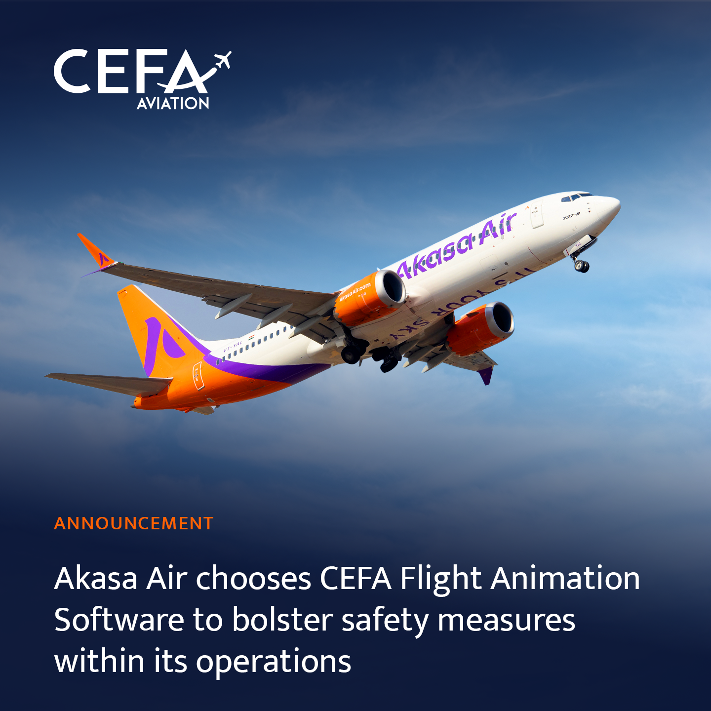 " At Akasa Air, our primary goal is to emerge as the world's leading airline for safety. " Said Capt. Gaurav Pathak, Chief of Flight Safety at Akasa Air. "Safety is of utmost importance at Akasa Air and we continuously strive to pursue the highest standards of safety. Partnering with CEFA Aviation aligns with our commitment towards adopting best-in-class solutions to meet global safety standards".