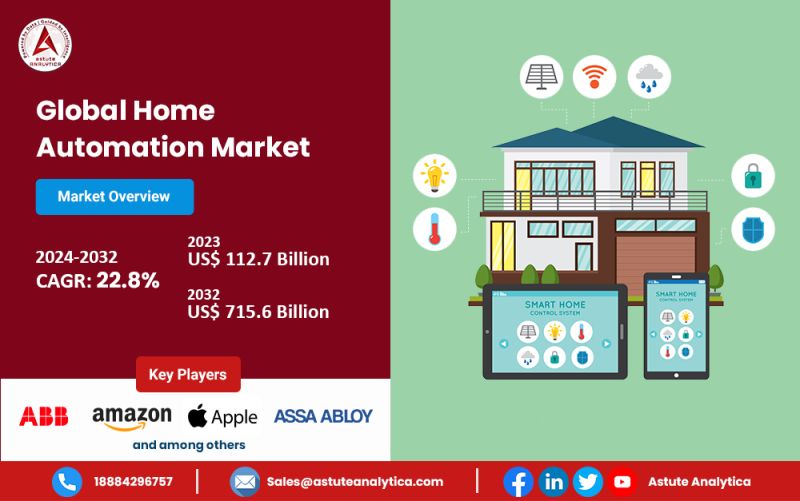 CHICAGO, CA, UNITED STATES, September 23, 2024 /EINPresswire.com/ -- The global 𝐡𝐨𝐦𝐞 𝐚𝐮𝐭𝐨𝐦𝐚𝐭𝐢𝐨𝐧 𝐦𝐚𝐫𝐤𝐞𝐭 is on a rapid growth trajectory, with its value reaching 𝐔𝐒$ 𝟏𝟏𝟐.𝟕 𝐛𝐢𝐥𝐥𝐢𝐨𝐧 𝐢𝐧 𝟐𝟎𝟐𝟑 and projected to skyrocket to 𝐔𝐒$ 𝟕𝟏𝟓.𝟔 𝐛𝐢𝐥𝐥𝐢𝐨𝐧 𝐛𝐲 𝟐𝟎𝟑𝟐, reflecting an impressive compound annual growth rate (𝐂𝐀𝐆𝐑) 𝐨𝐟 𝟐𝟐.𝟖% 𝐟𝐫𝐨𝐦 𝟐𝟎𝟐𝟒 𝐭𝐨 𝟐𝟎𝟑𝟐. The surging demand for smart homes, coupled with advancements in IoT (Internet of Things) technology, continues to drive this market expansion.