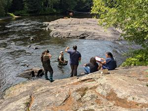 Taking school to the stream at Enviro Week, interns explored the importance of source water protection.