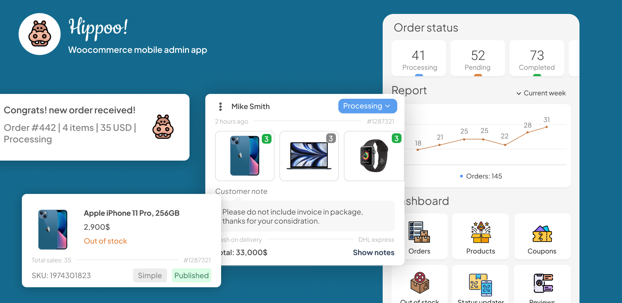 The Hippoo WooCommerce app simplifies store management with user-friendly features for seamless inventory, order management, and customer engagement.
