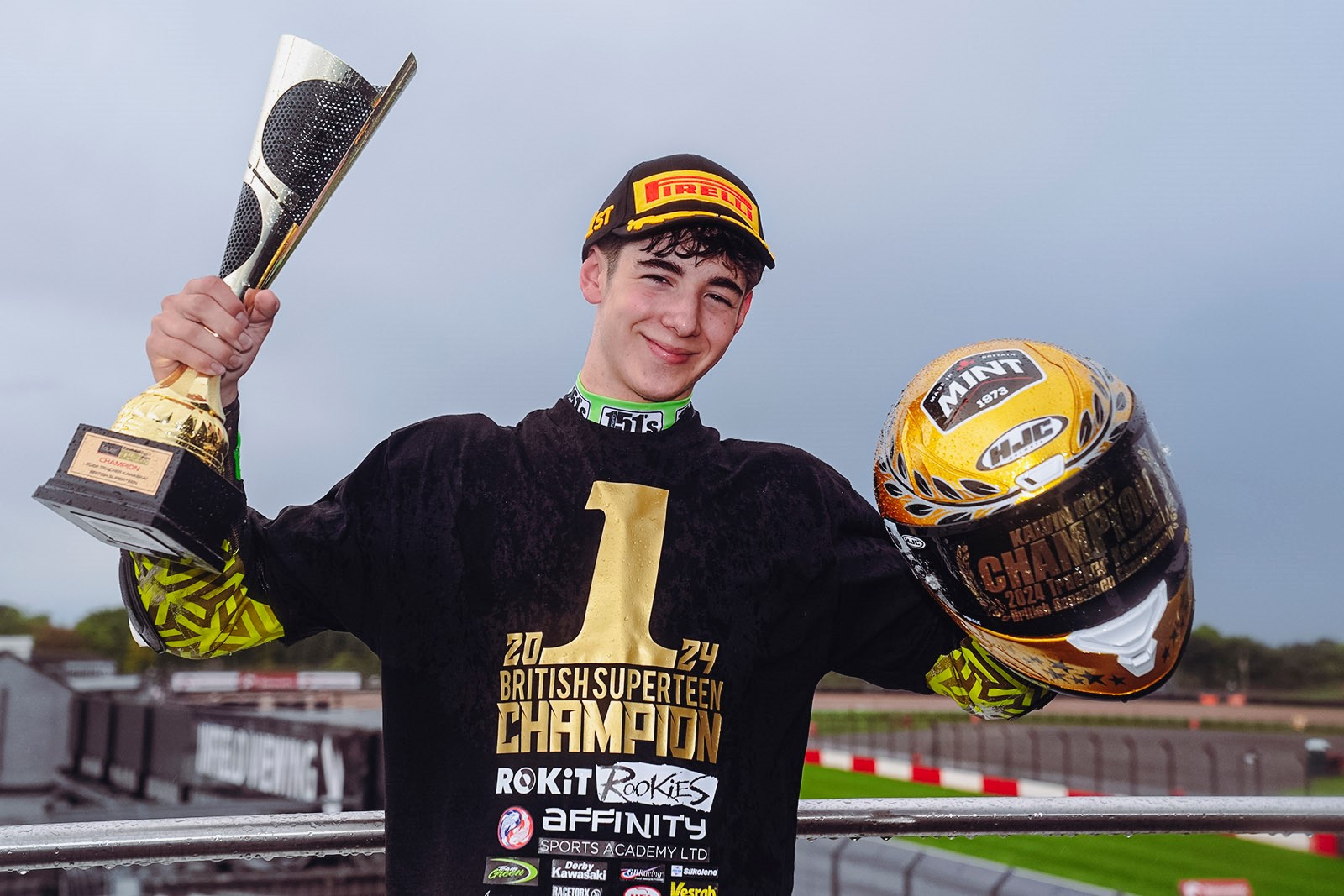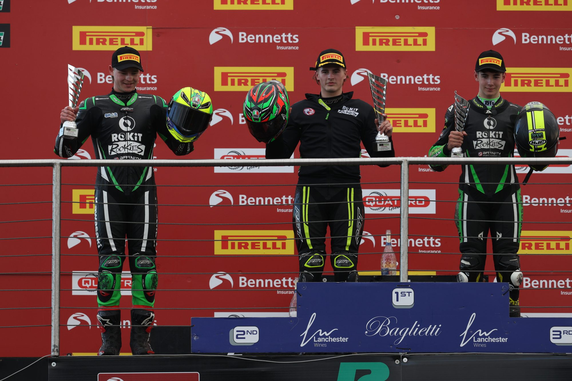 ROKiT Rookie Kalvin Kelly crowned first ever Tracker Kawasaki British Superteen Champion with team-mates Brodie Gawith runner-up and Chloe Jones fourth