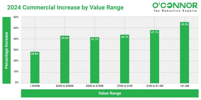 O'Connor concluded that Hyde Park Township residential values increased by 29%, while commercial values soared by 51%.