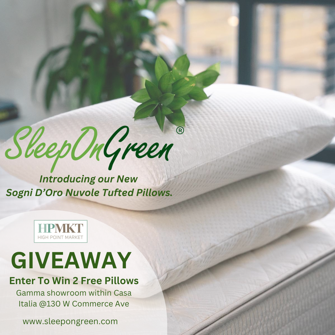 To explore Sleep On Green, we invite Design Professionals and Market Buyers to make an appointment for a personalized tour and to experience the new eco-luxury Dolce Vita mattress. To schedule an appointment email: sales@sleepongreen.com. As a special bonus for market attendees that come by early, you can enter a drawing for a chance to win 2 x luxury Sogni D’Oro Nuvole tufted pillows. Interested market buyers are encouraged to stop Oct 26-30 from 9 am to 5 pm in the Gamma showroom within Casa Italia (130 W Commerce Ave) to enter to win. (*Winner will be contacted by email following High Point Market and the 2 pillows will be shipped free of charge.*)